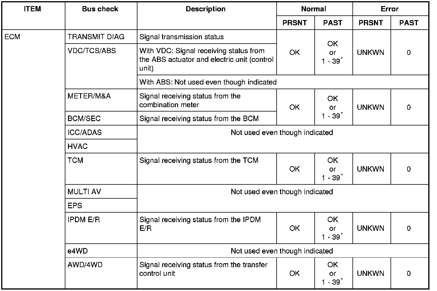 0: Error at present, 1 - 39: Error in the past (Number means the number of times the ignition switch is turned OFF->ON)