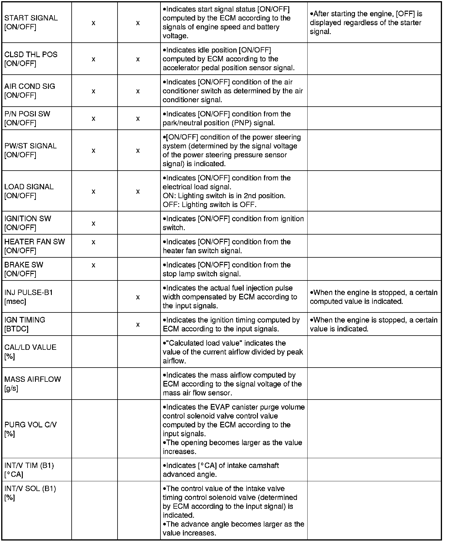 Regarding items of DTC and 1st trip DTC, refer to [DTC Index: ECM] DTC Index ECM.)