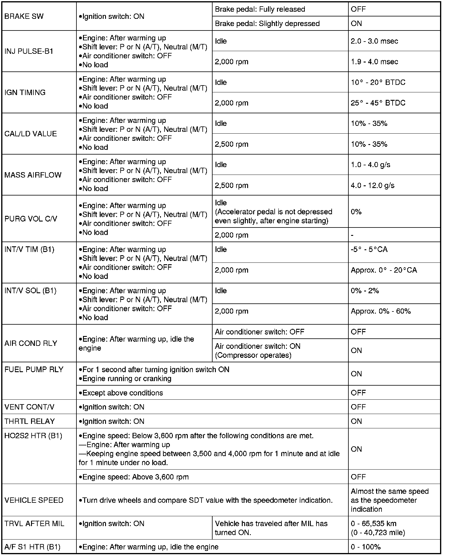 - Specification data are output/input values which are detected or supplied by the ECM at the connector.