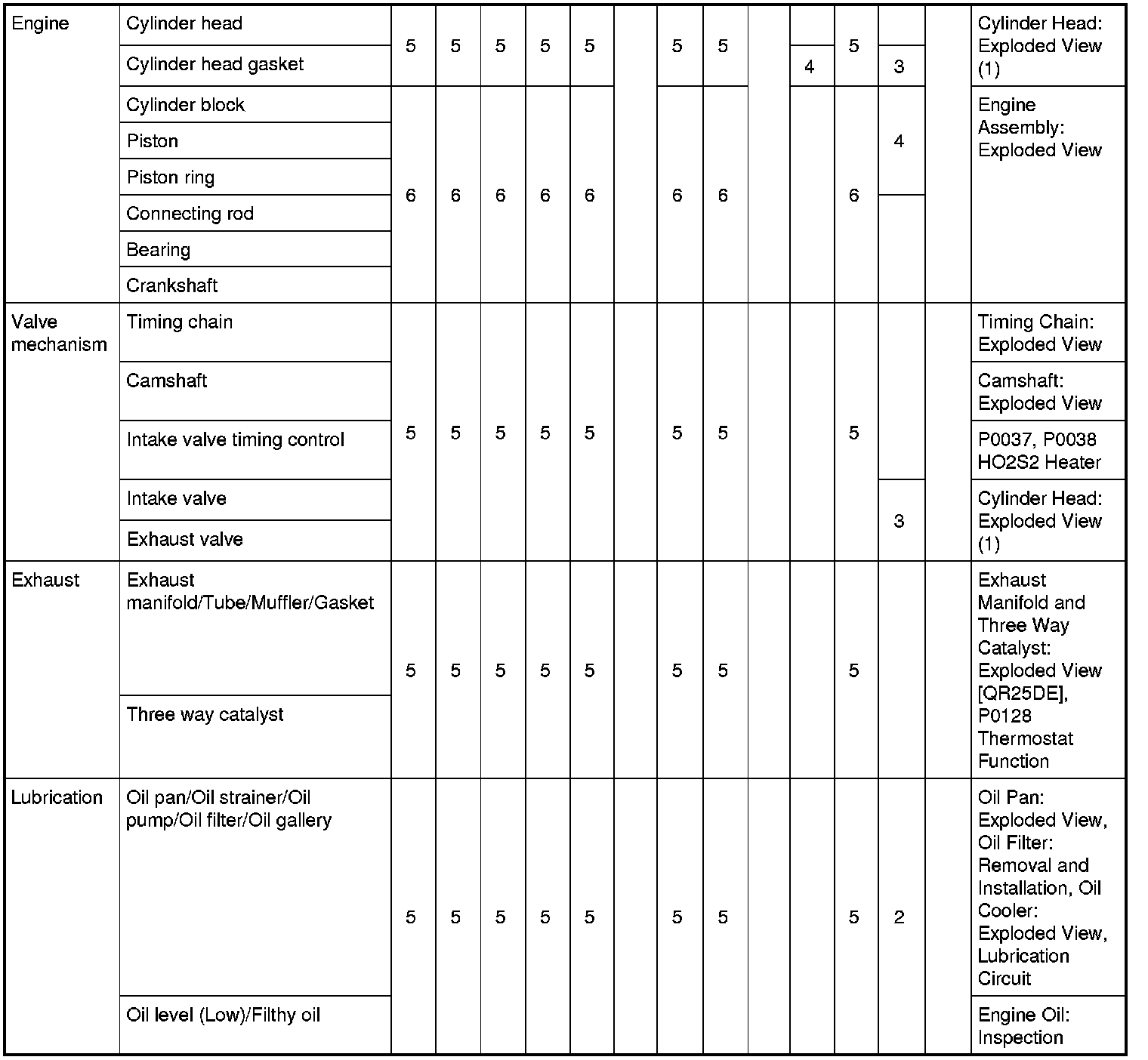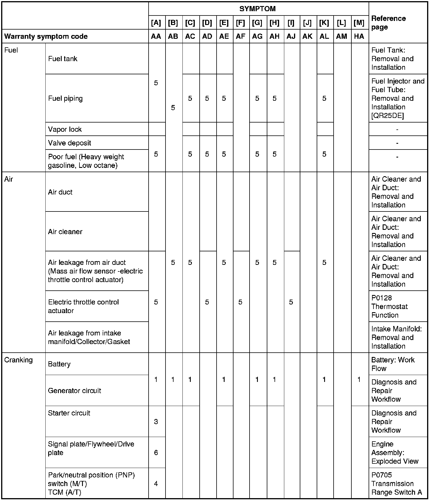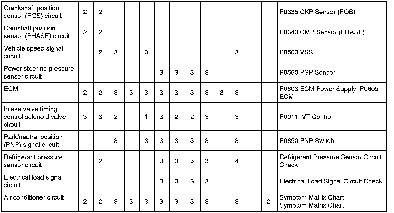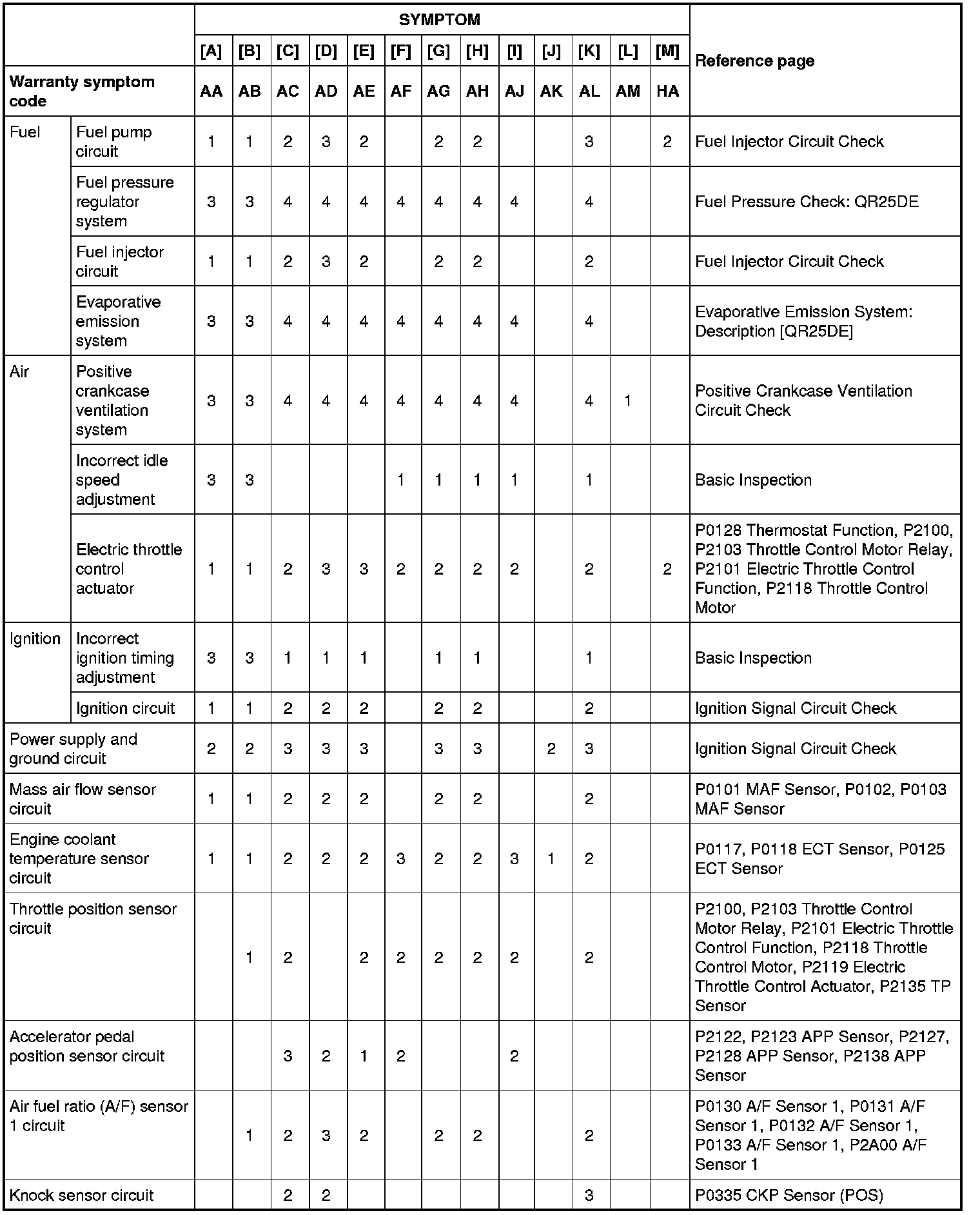 Engine Control System Symptoms: Symptom Matrix Chart