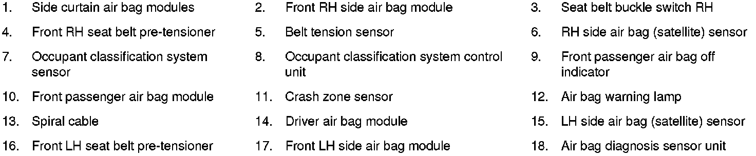 Restraints and Safety Systems: Locations