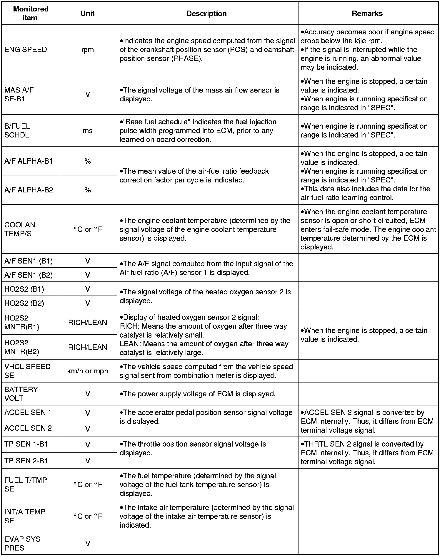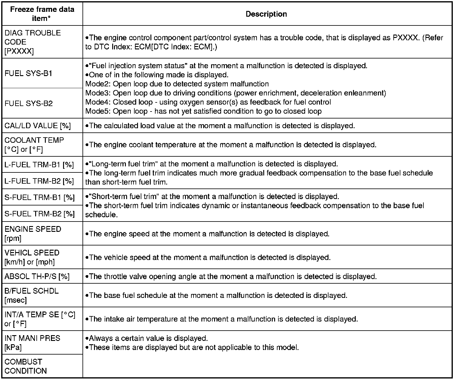 Regarding items of DTC and 1st trip DTC, refer to [DTC Index: ECM] DTC Index ECM.)