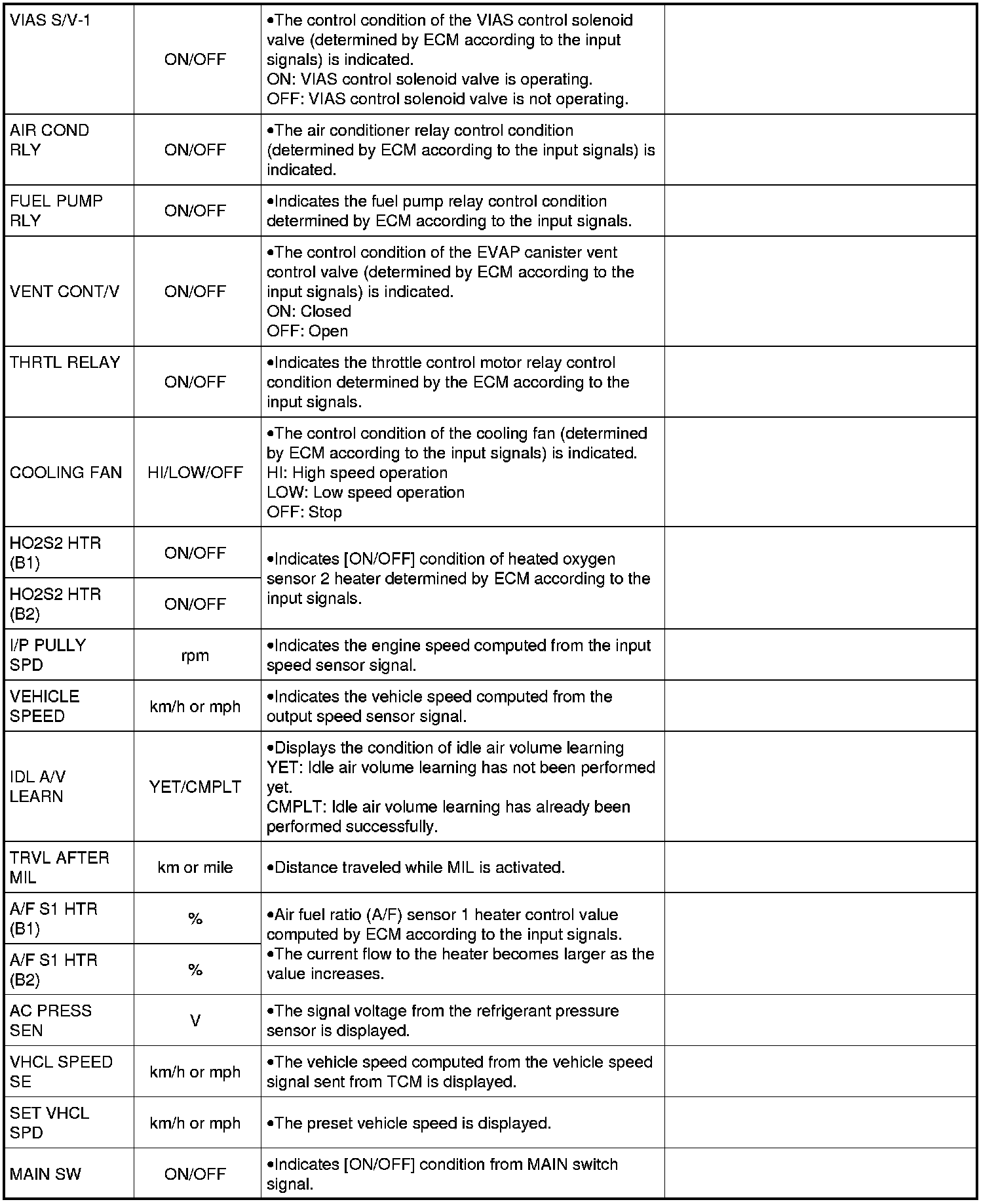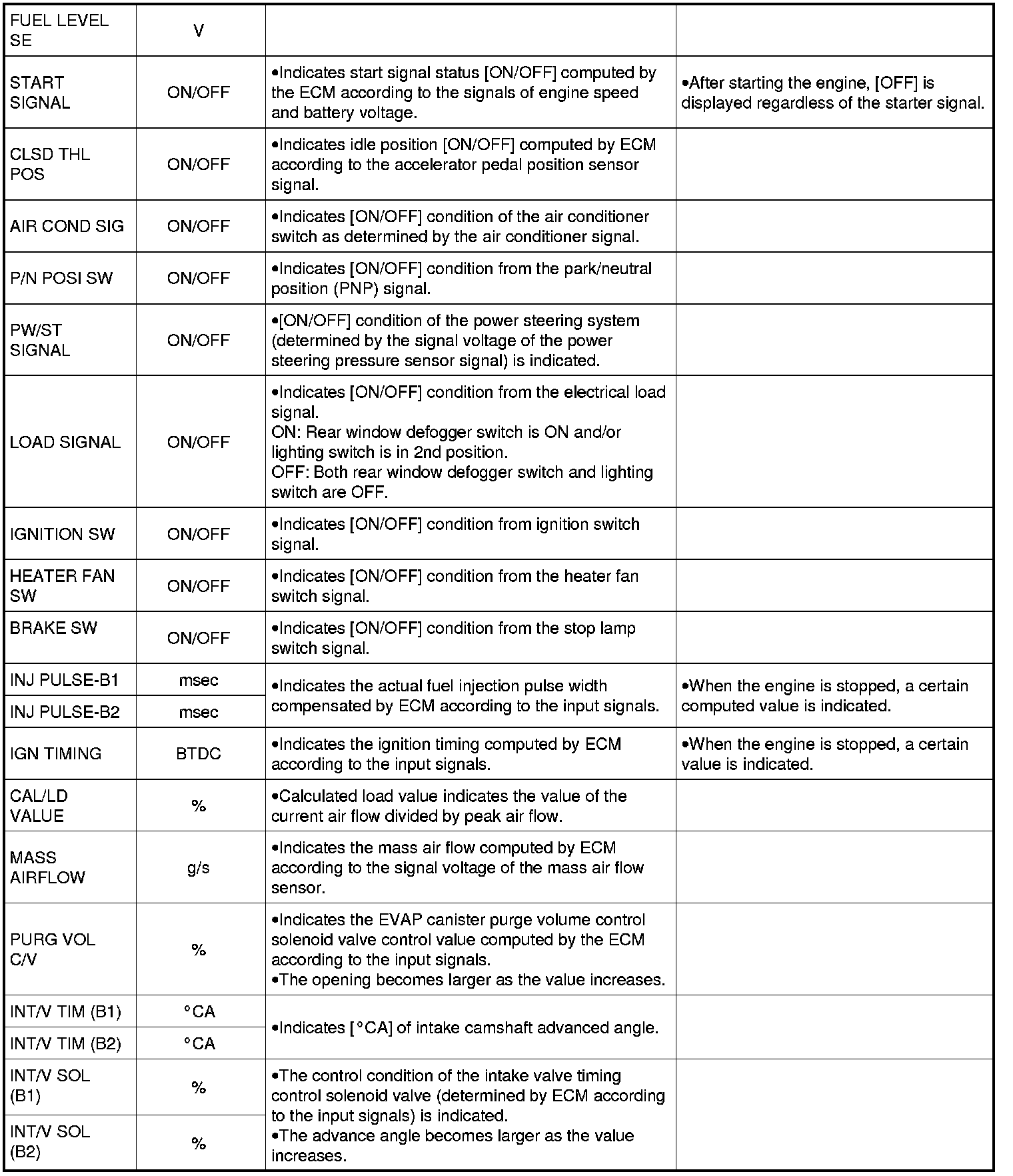 - If "TIME" is neither "0" nor "1t", the DTC occurred in the past and ECM shows the number of times the vehicle has been driven since the last detection of the DTC.