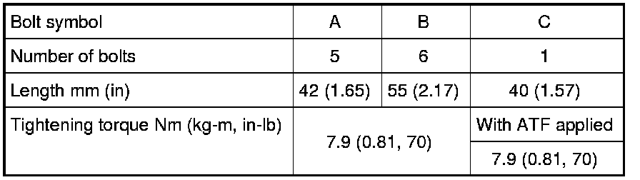 26) Install bolts (A), (B) and (C) in control valve with TCM.