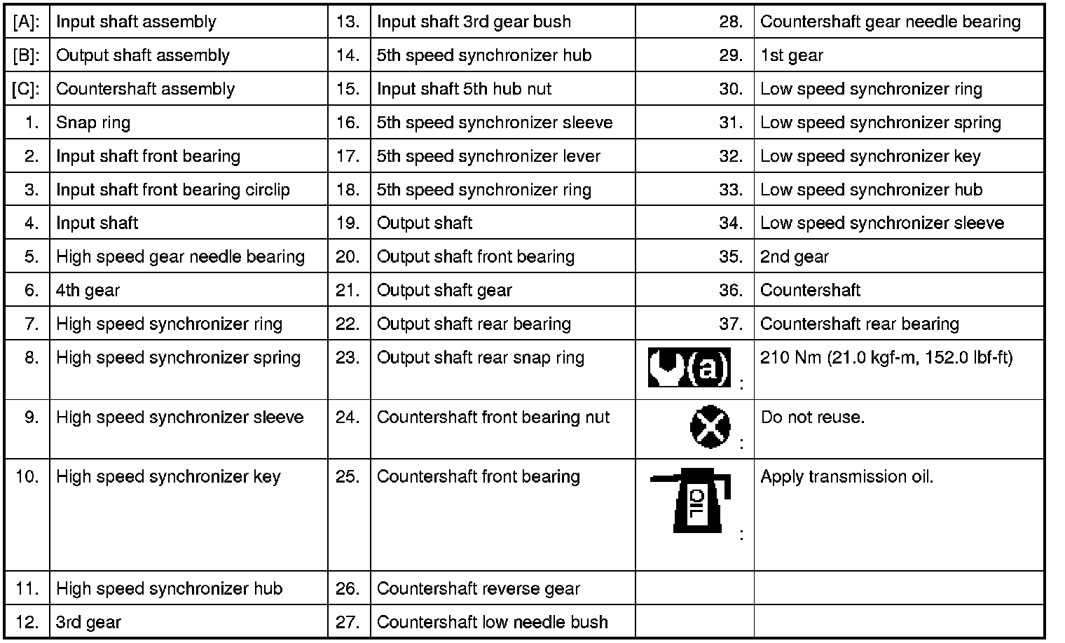 Input Shaft Assembly, Output Shaft Assembly and Countershaft Assembly Components