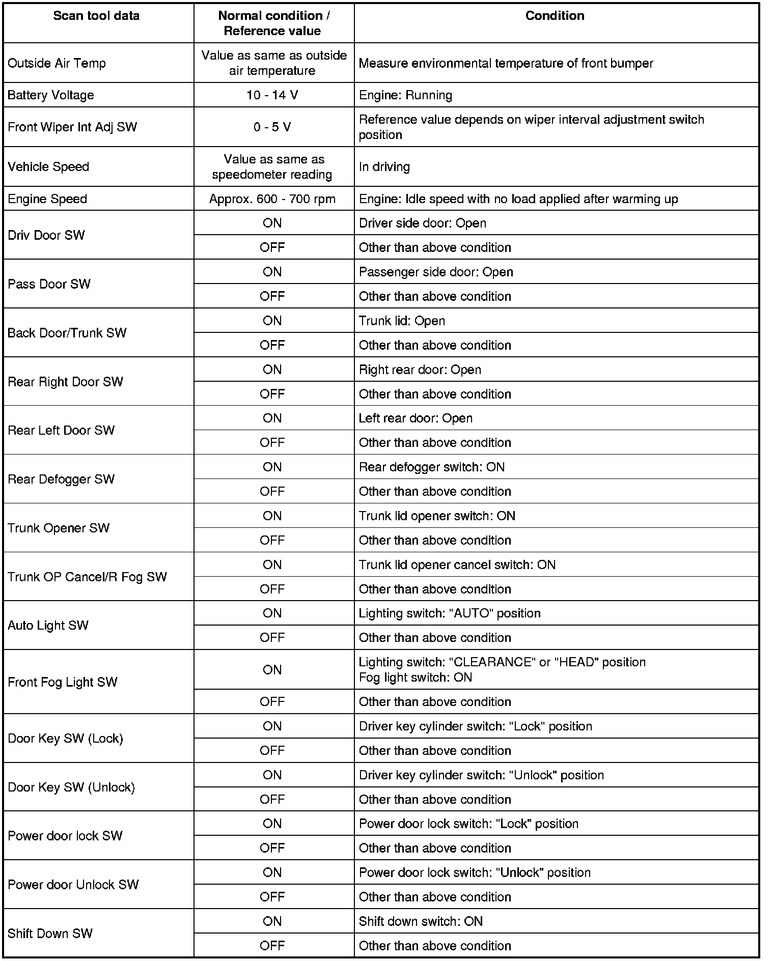 - Refer to Scan Tool Testing and Procedures Scan Tool Data