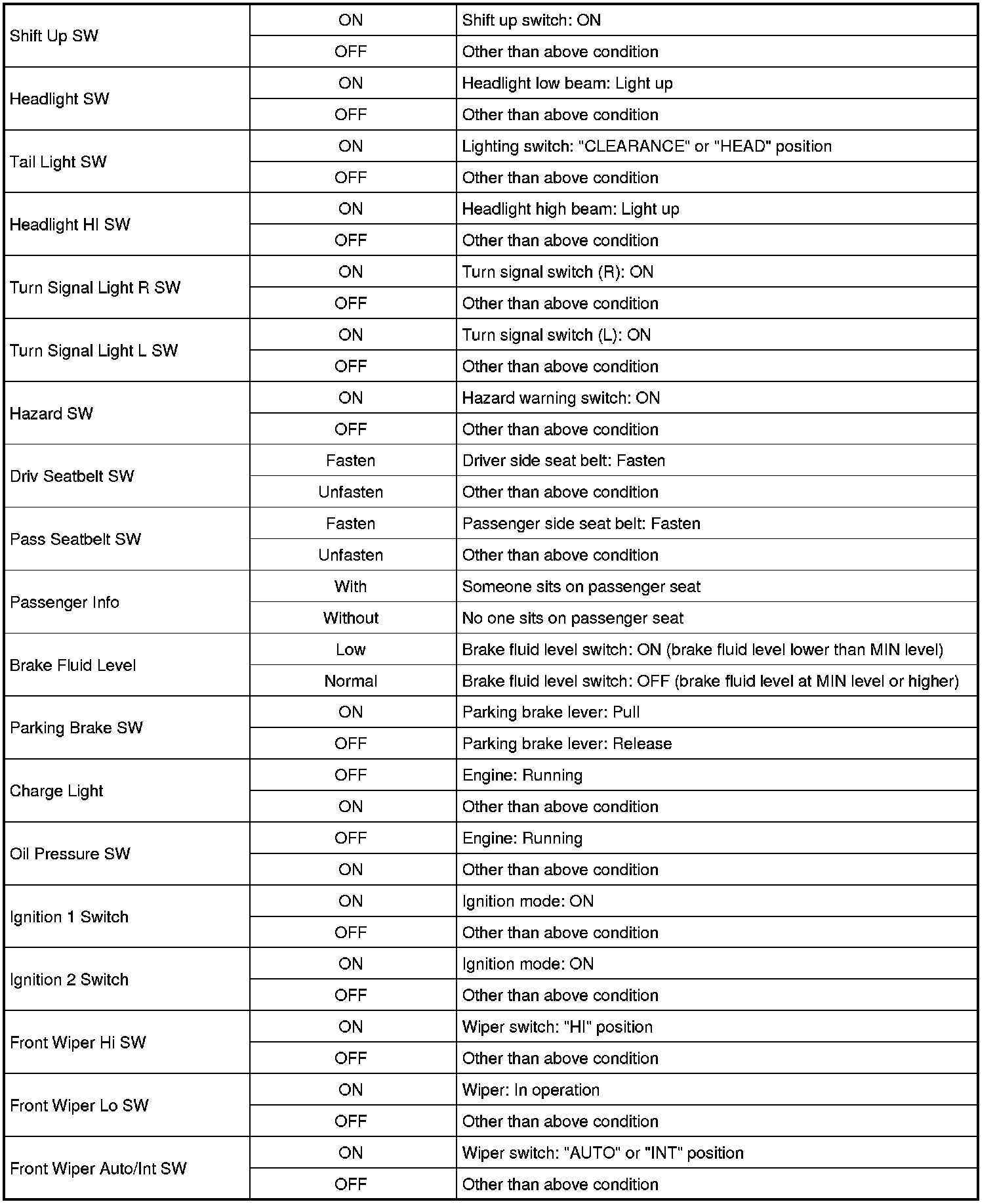 - For "Ignition mode" described in the following table, it means power supply mode in keyless push start system.