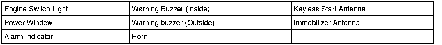 Home >> Suzuki >> 2011 >> Kizashi AWD L4-2.4L >> Repair and Diagnosis >> Body and Frame >> Locks >> Keyless Entry >> Keyless Starting System >> Testing and Inspection >> Scan Tool Testing and Procedures >> Scan Tool Active Test Table