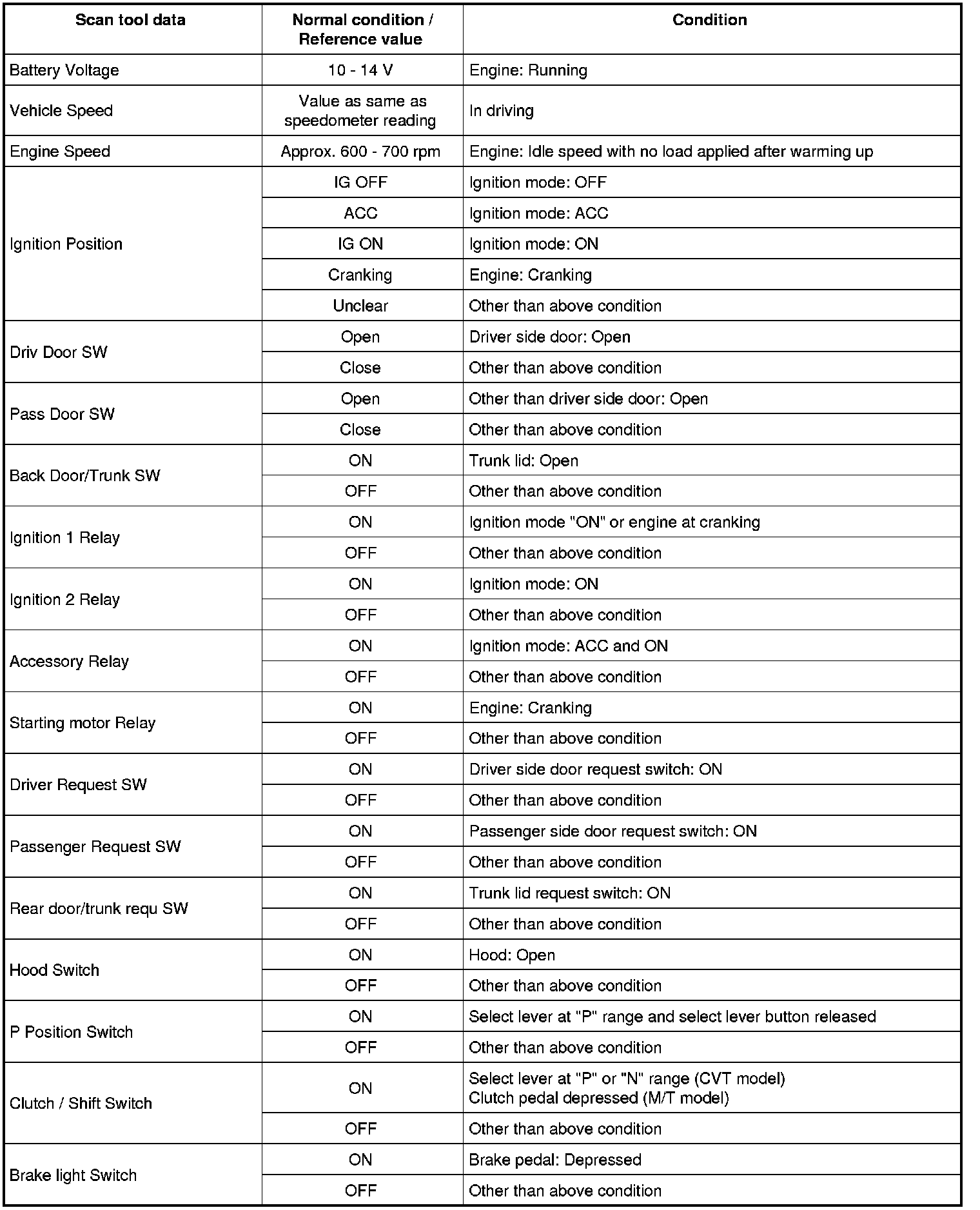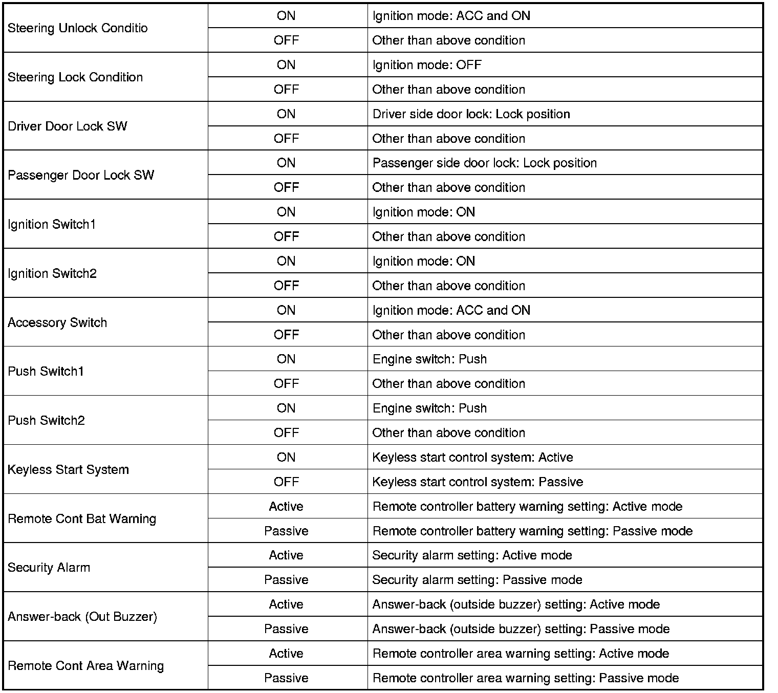 Home >> Suzuki >> 2011 >> Kizashi AWD L4-2.4L >> Repair and Diagnosis >> Body and Frame >> Locks >> Keyless Entry >> Keyless Starting System >> Testing and Inspection >> Scan Tool Testing and Procedures >> Scan Tool Data