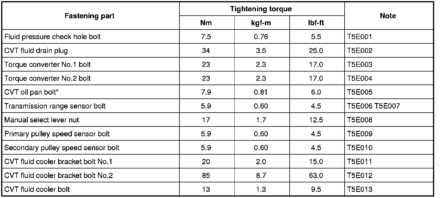 For the tightening torques of fasteners not specified in this section, refer to Fastener Information Fasteners Information.