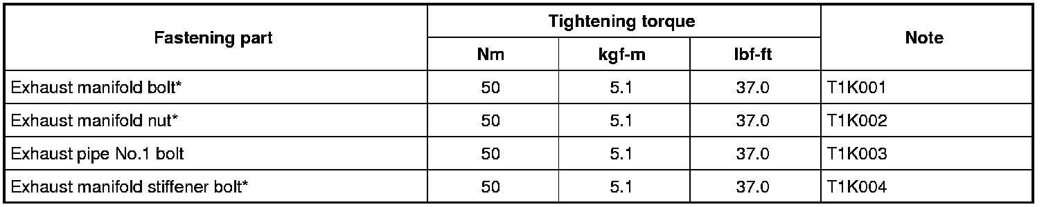 Tightening Torque Specifications