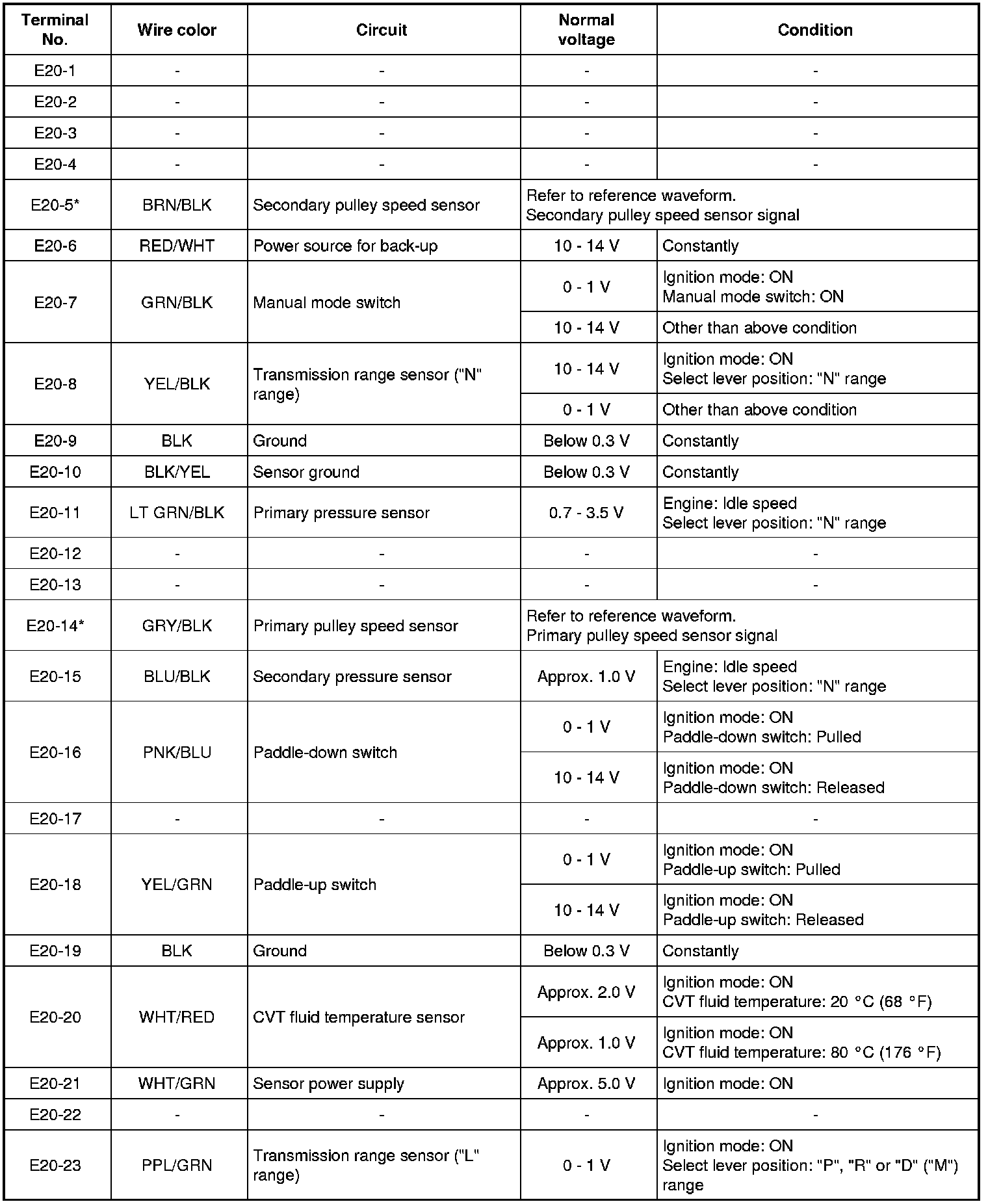 - Voltage with asterisk (*) cannot be measured by voltmeter because it is pulse signal. Check it with oscilloscope.