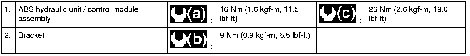 - Regarding ABS hydraulic unit / control module assembly removal and installation, confirm specified torque and do not use impact tool to avoid damage.