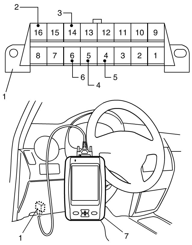 DLC (1) is in compliance with SAE J1962 in its installation position, the shape of connector and pin assignment.