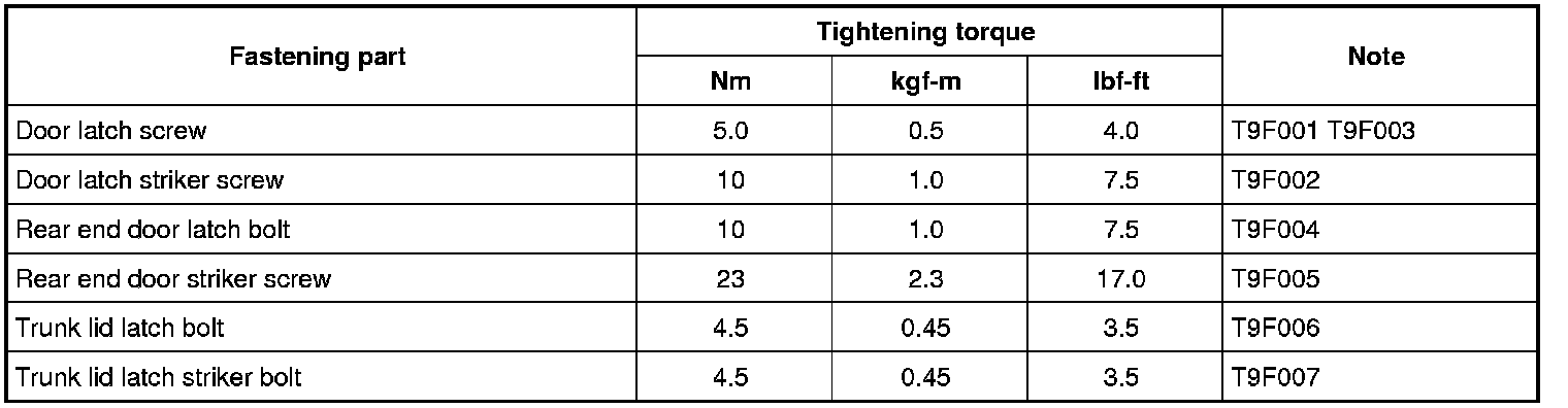Tightening Torque Specifications
