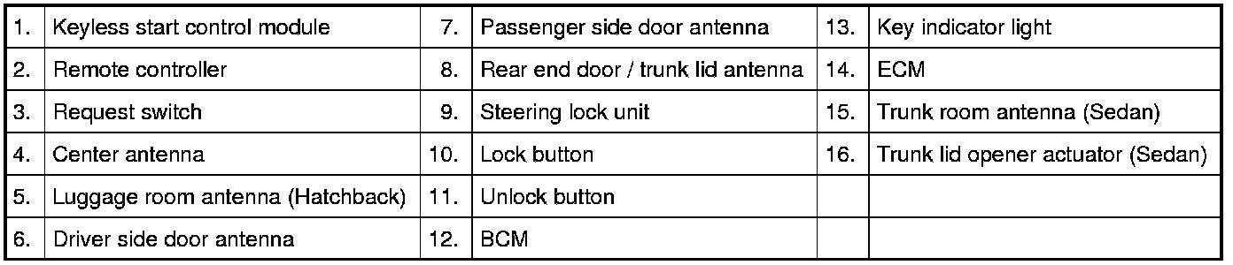 Home >> Suzuki >> 2011 >> SX4 2WD L4-2.0L >> Repair and Diagnosis >> Starting and Charging >> Starting System >> Keyless Starting System >> Description and Operation >> Keyless Start System Description