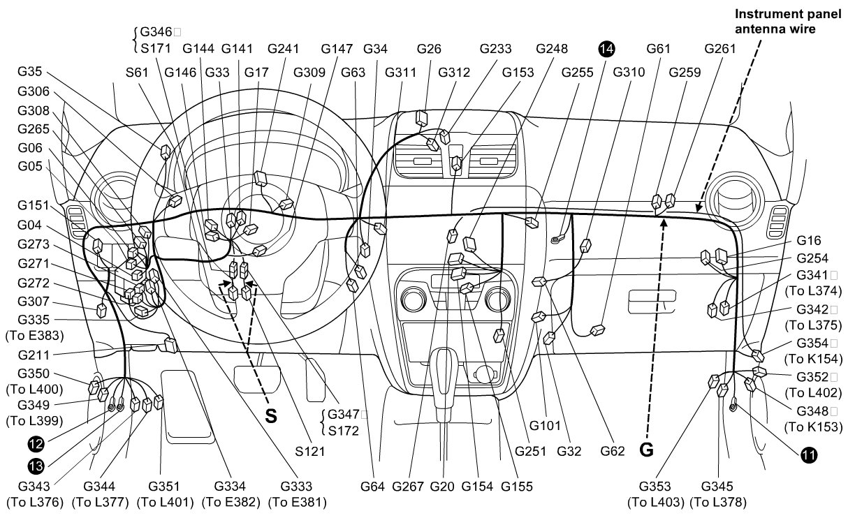 G: Instrument Panel Harness, Instrument Panel Antenna Wire / S: Connect Coil