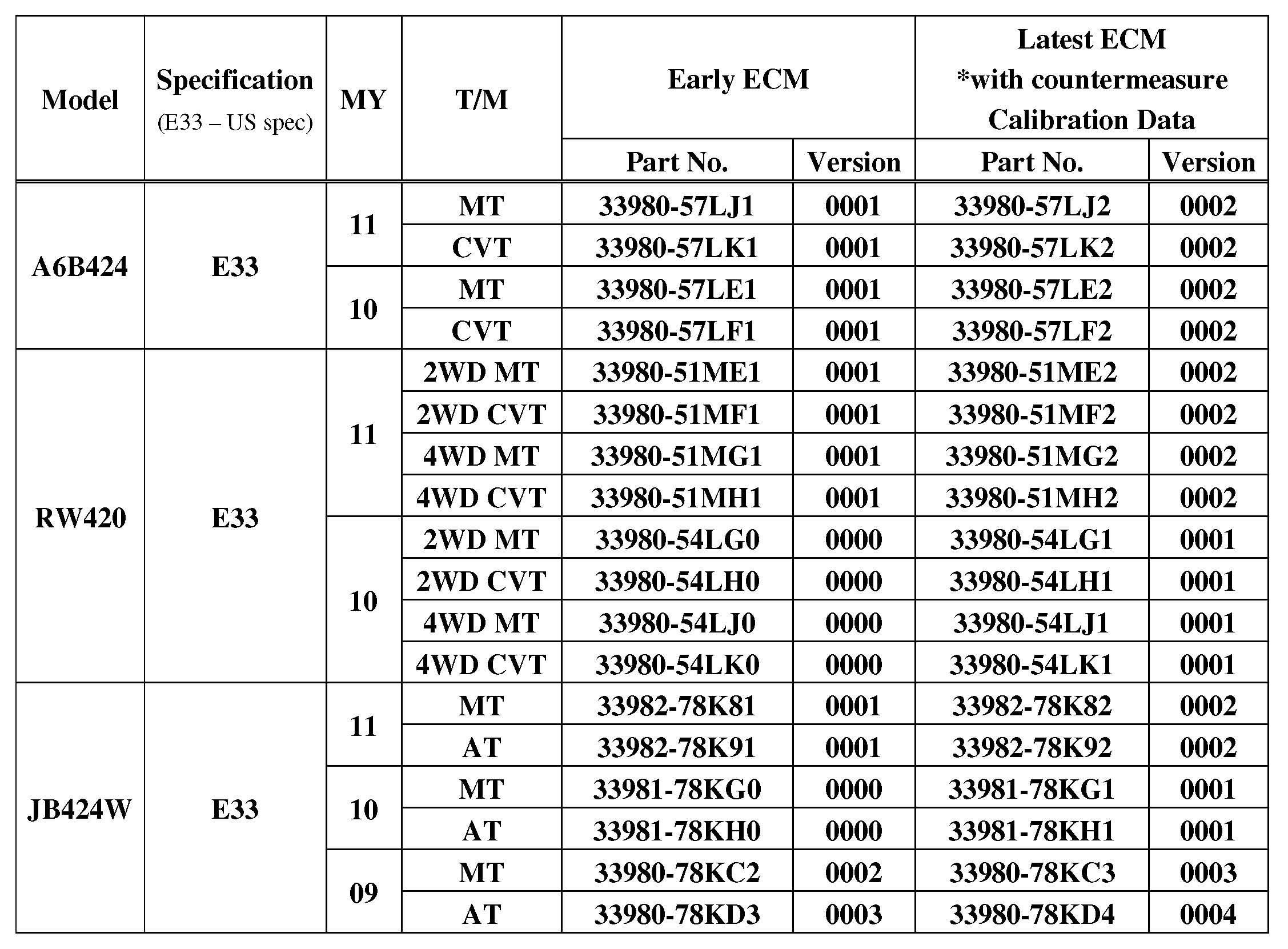 ECU Model List