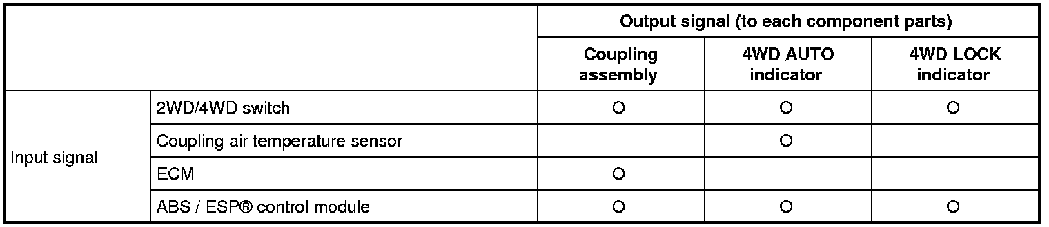 4WD Control Module Input / Output Signal Table