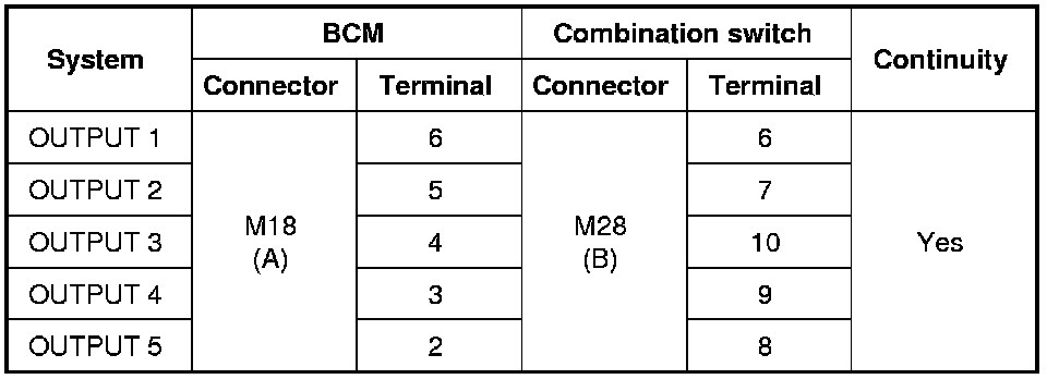 Combination Switch Output Circuit Check