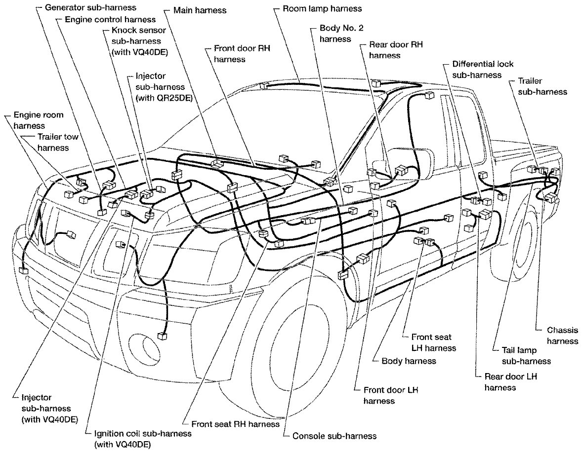 - Engine Control Harness (VQ40DE Models), Injector Sub-harness, Ignition Coil Sub-harness and Knock Sensor Sub-harness