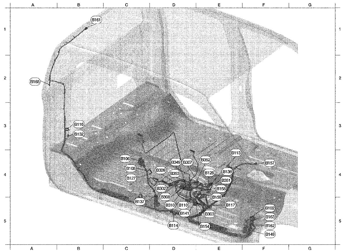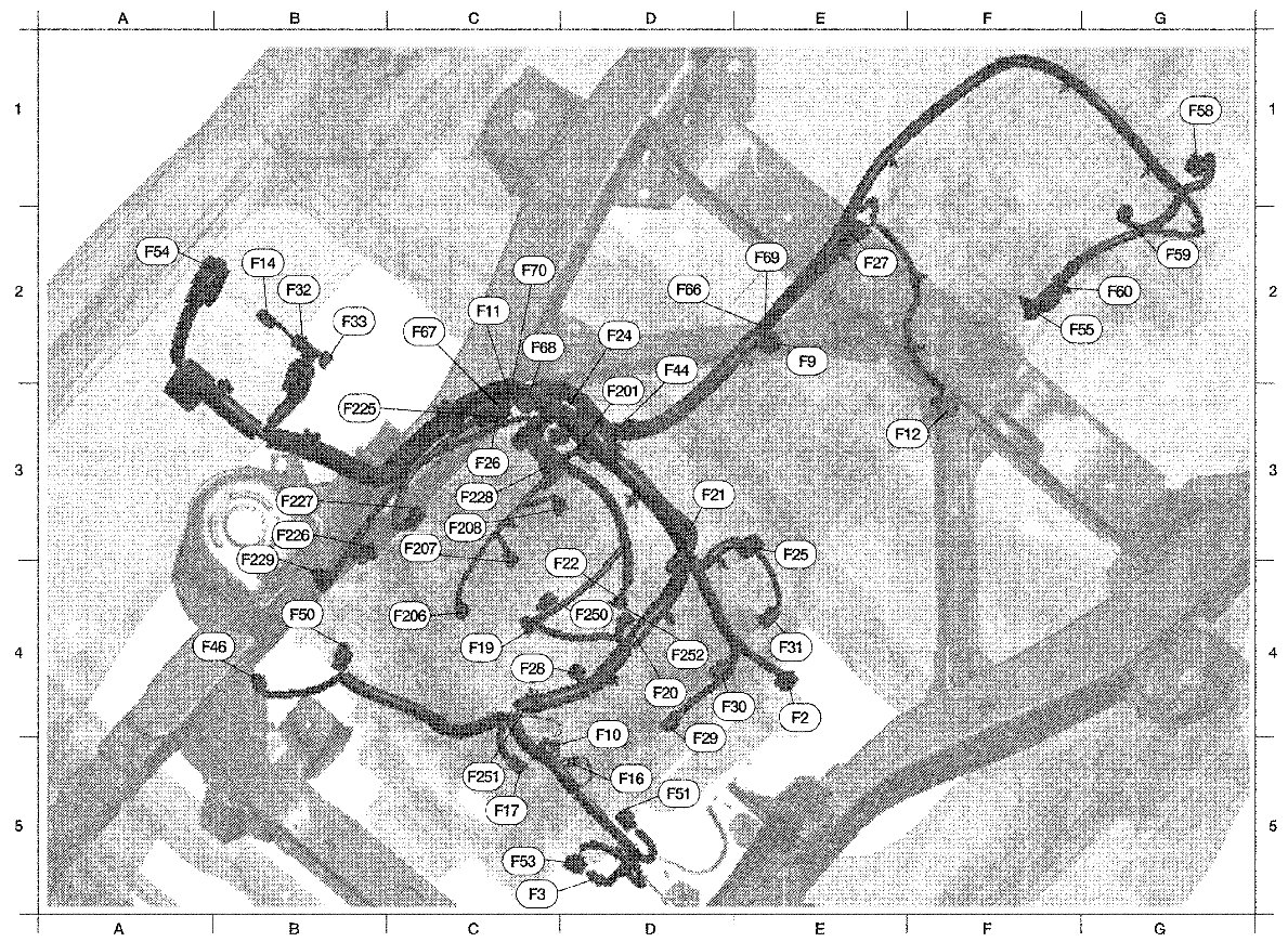 The following Harness Layouts use a map style grid to help locate connectors on the drawings: