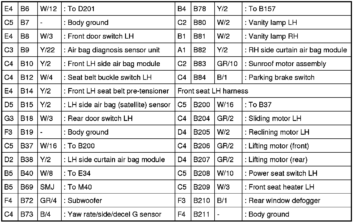 - Body Harness (Crew Cab Models) and Front Seat LH Harness