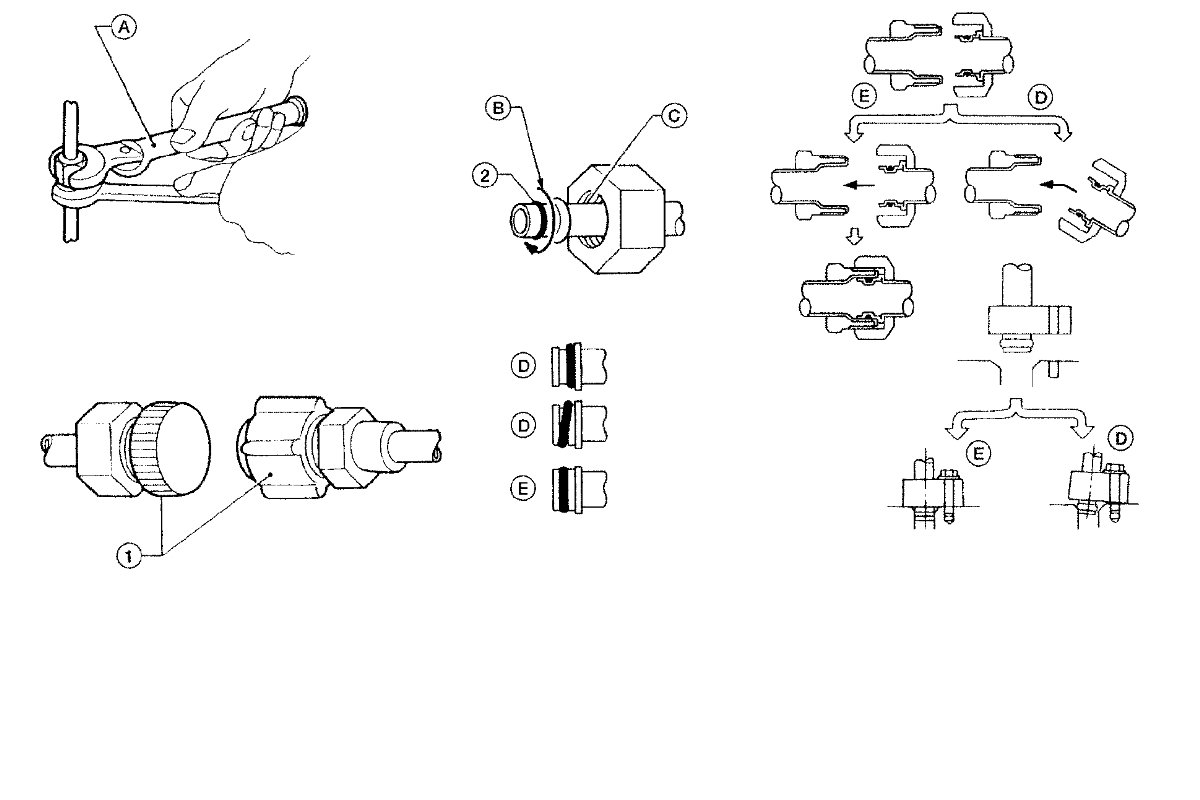 A new type refrigerant connection has been introduced to all refrigerant lines except the following locations.