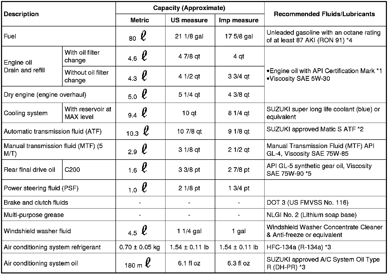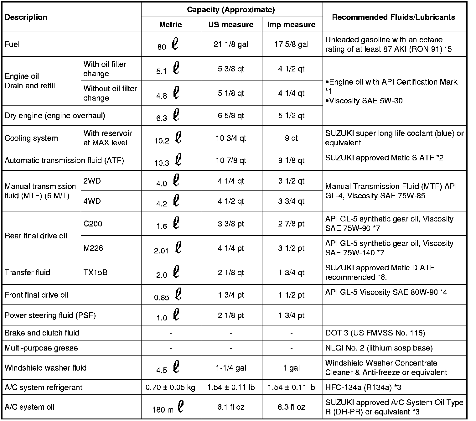 *5: See a SUZUKI dealer for service for synthetic oil.
