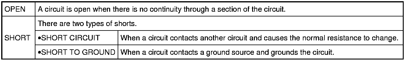 The continuity check is used to find an open in the circuit. The digital multimeter (DMM) set on the resistance function will indicate an open circuit as over limit (no beep tone or no ohms symbol). Make sure to always start with the DMM at the highest resistance level.