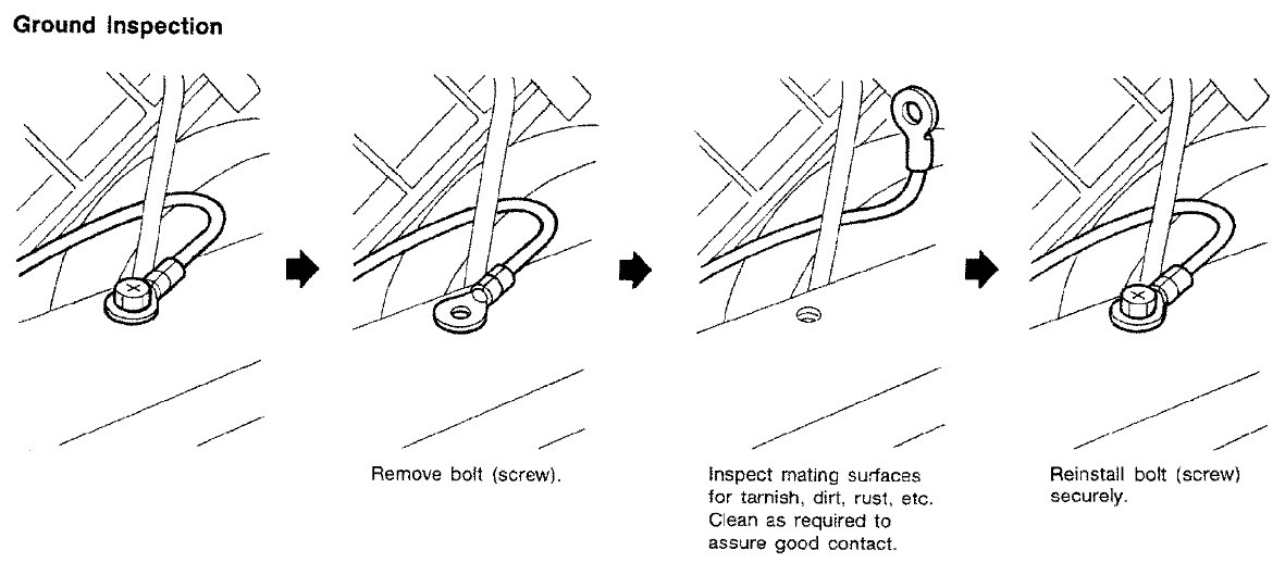 - Inspect for "add-on" accessories which may be interfering with the ground circuit.