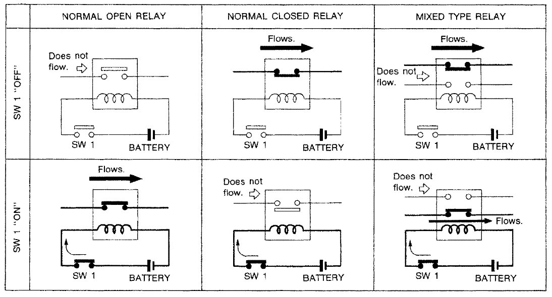 Relays can mainly be divided into three types: normal open, normal closed and mixed type relays.