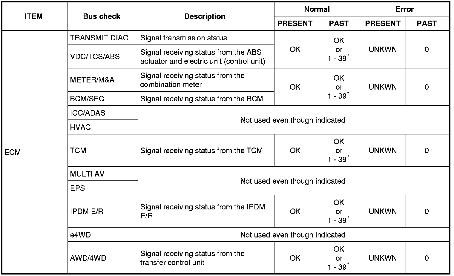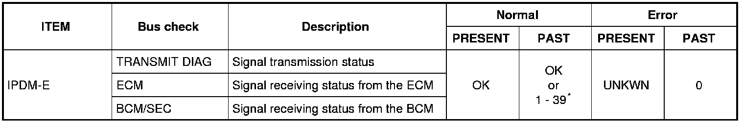 0: Error at present, 1 - 39: Error in the past (Number means the number of times the ignition switch is turned OFF -> ON)