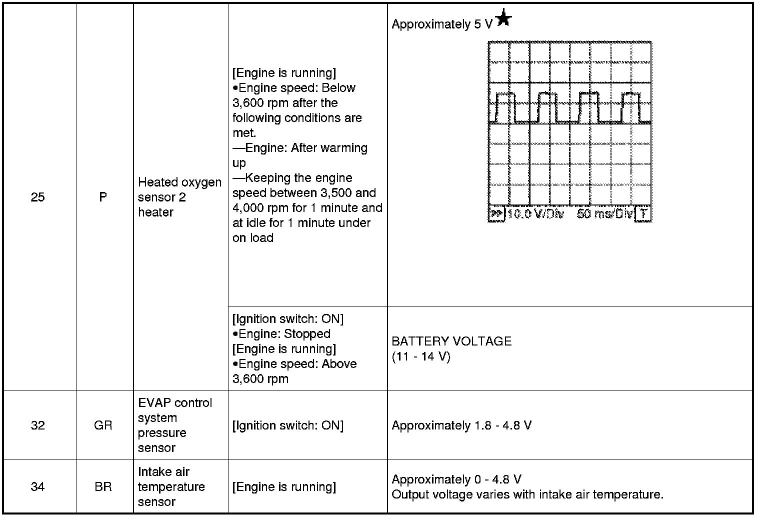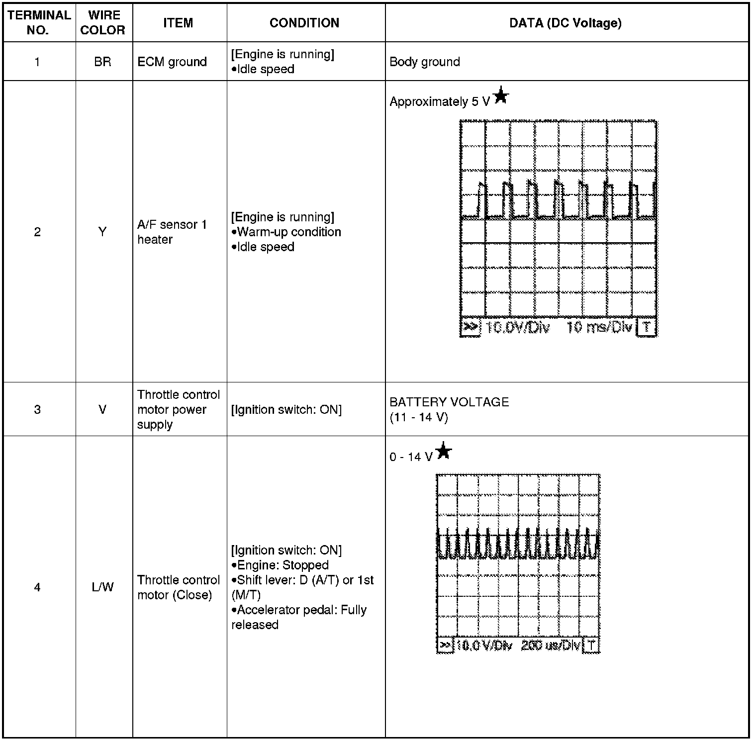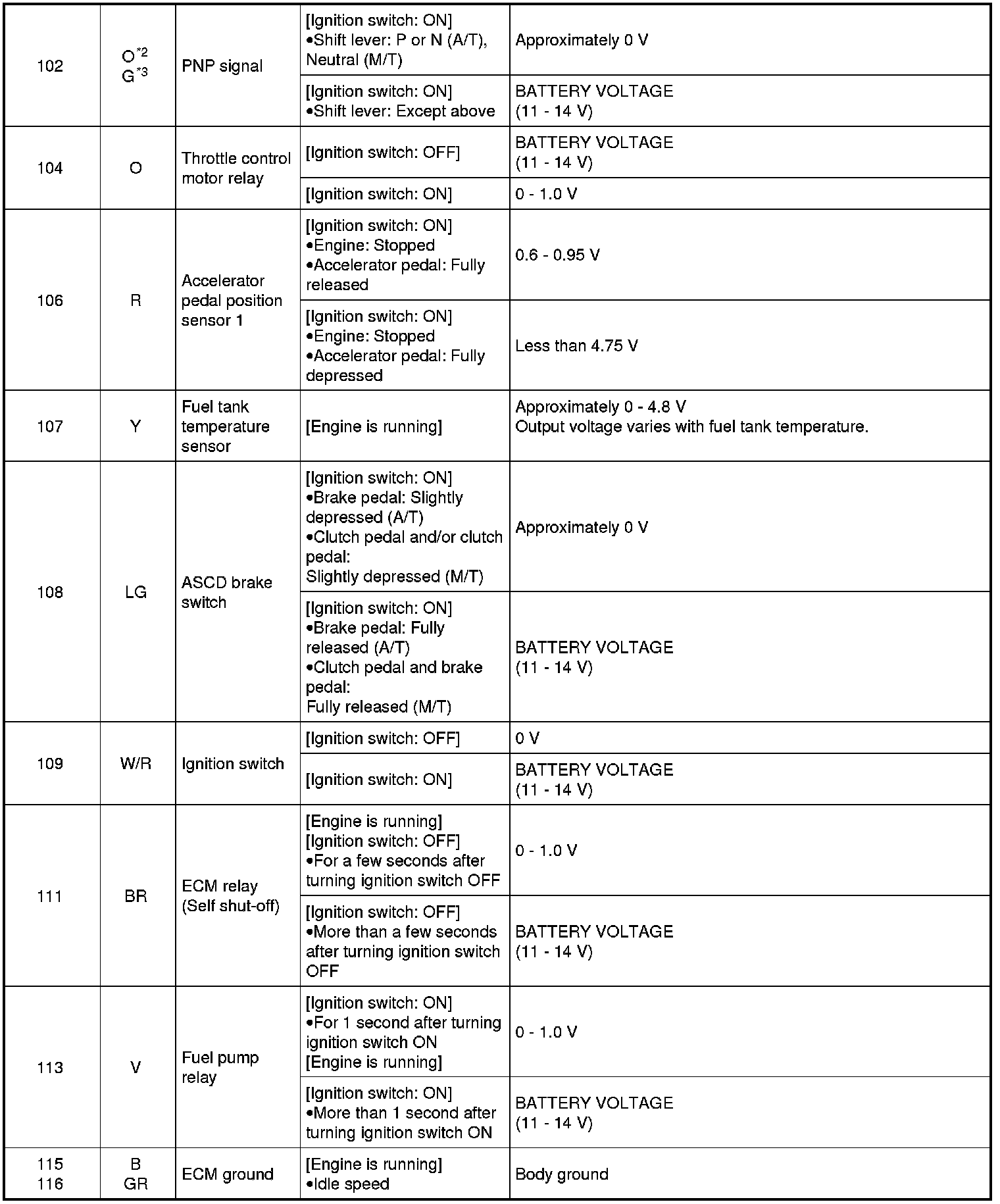 Never use ECM ground terminals when measuring input/output voltage. Doing so may result in damage to the ECM's transistor. Use a ground other than ECM terminals, such as the ground.