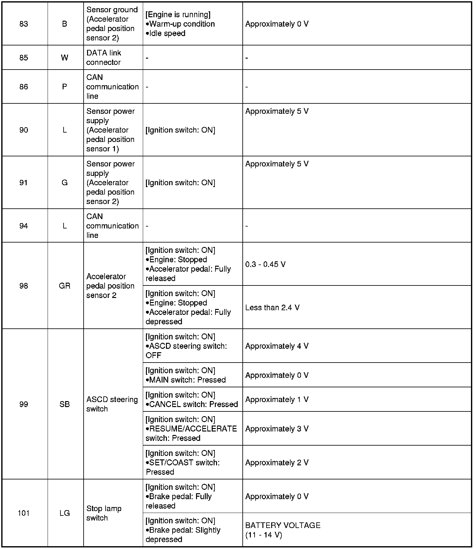 Specification data are reference values and are measured between each terminal and ground.