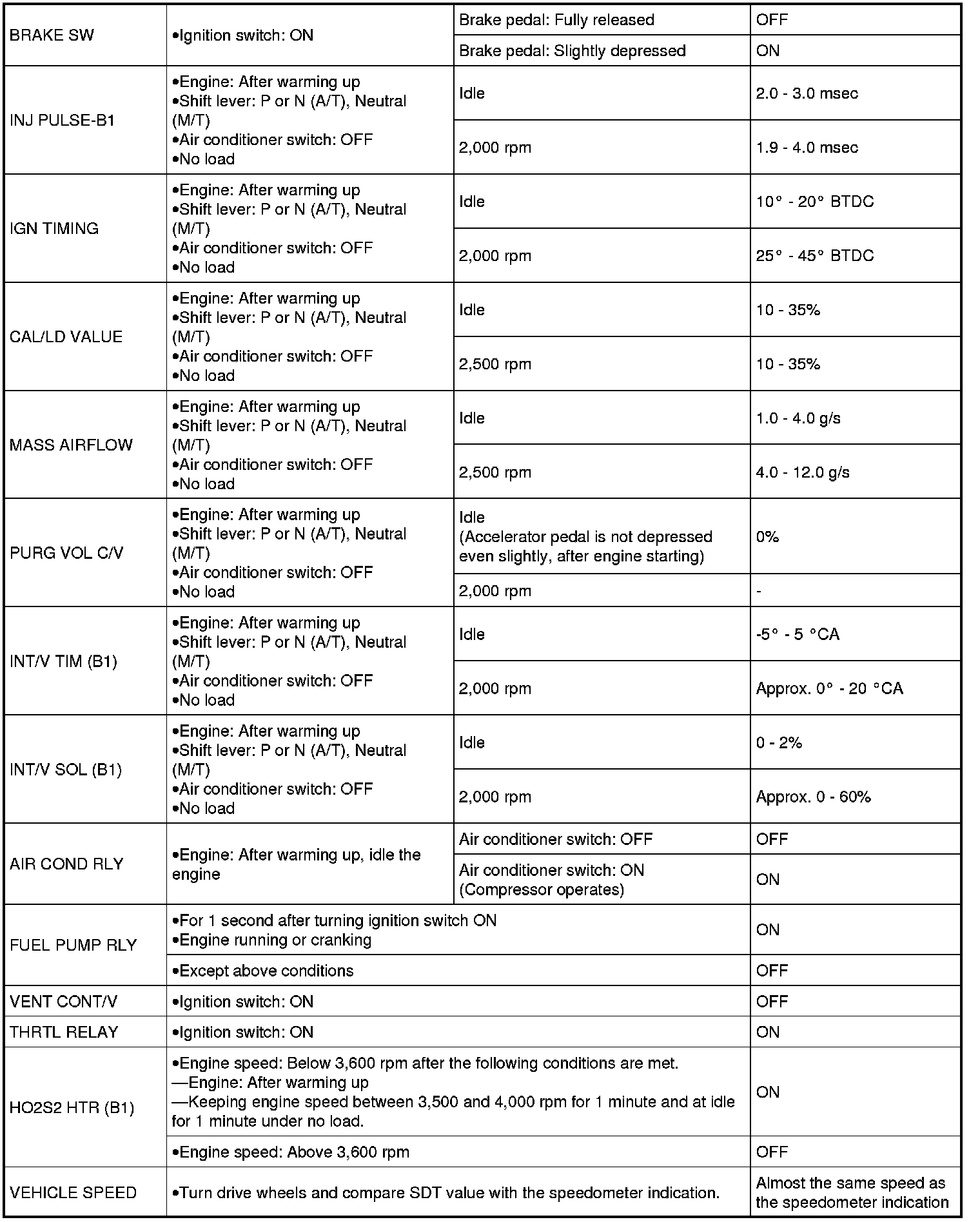 Home >> Suzuki >> 2012 >> Equator 2WD L4-2.5L >> Repair and Diagnosis >> Powertrain Management >> Computers and Control Systems >> Testing and Inspection >> Scan Tool Testing and Procedures >> SDT Reference Value in Data List Mode