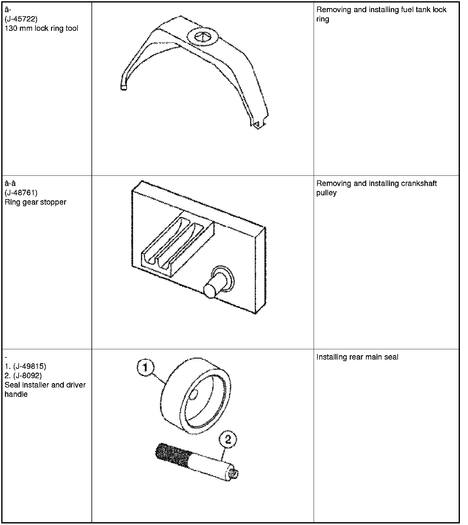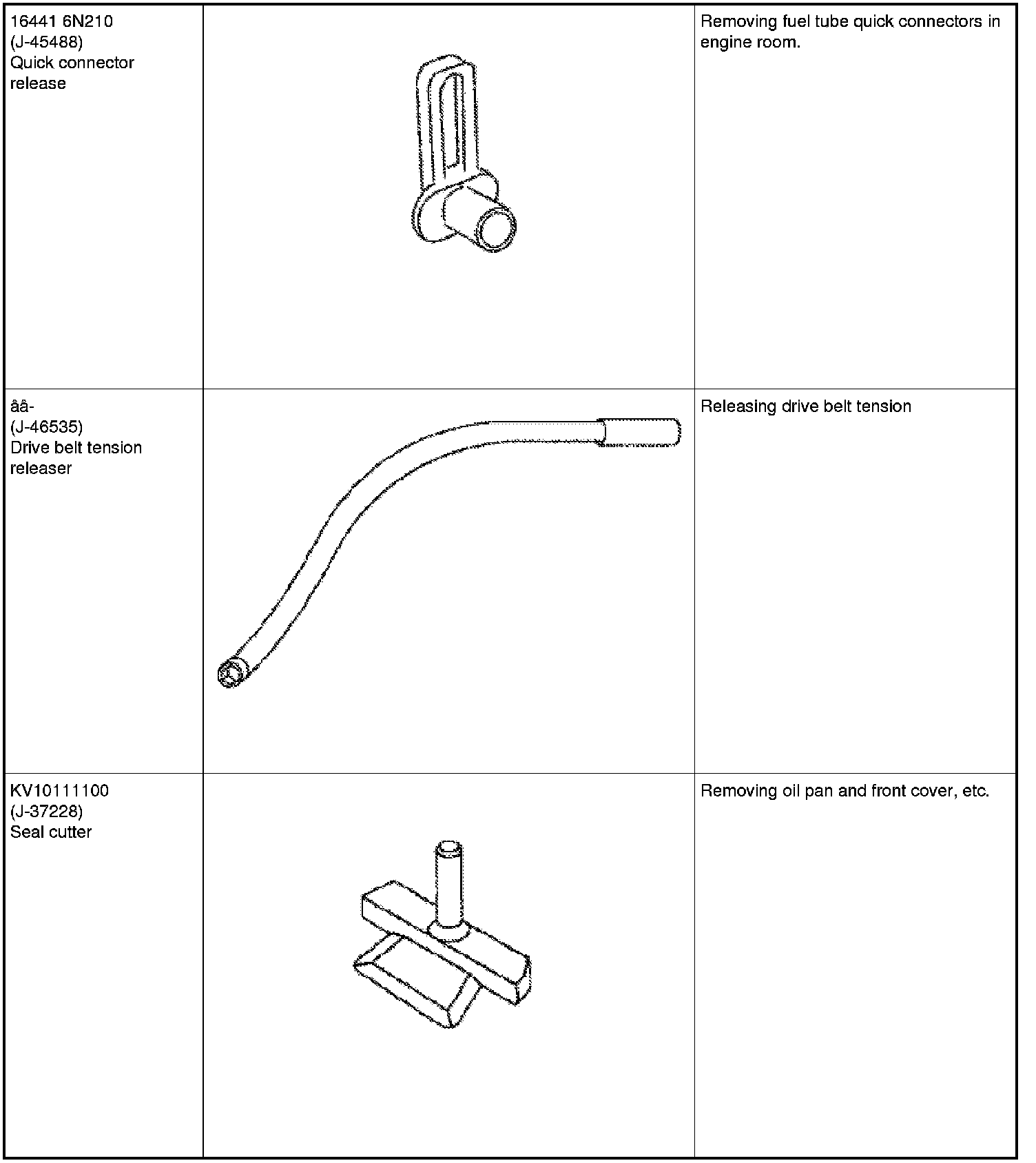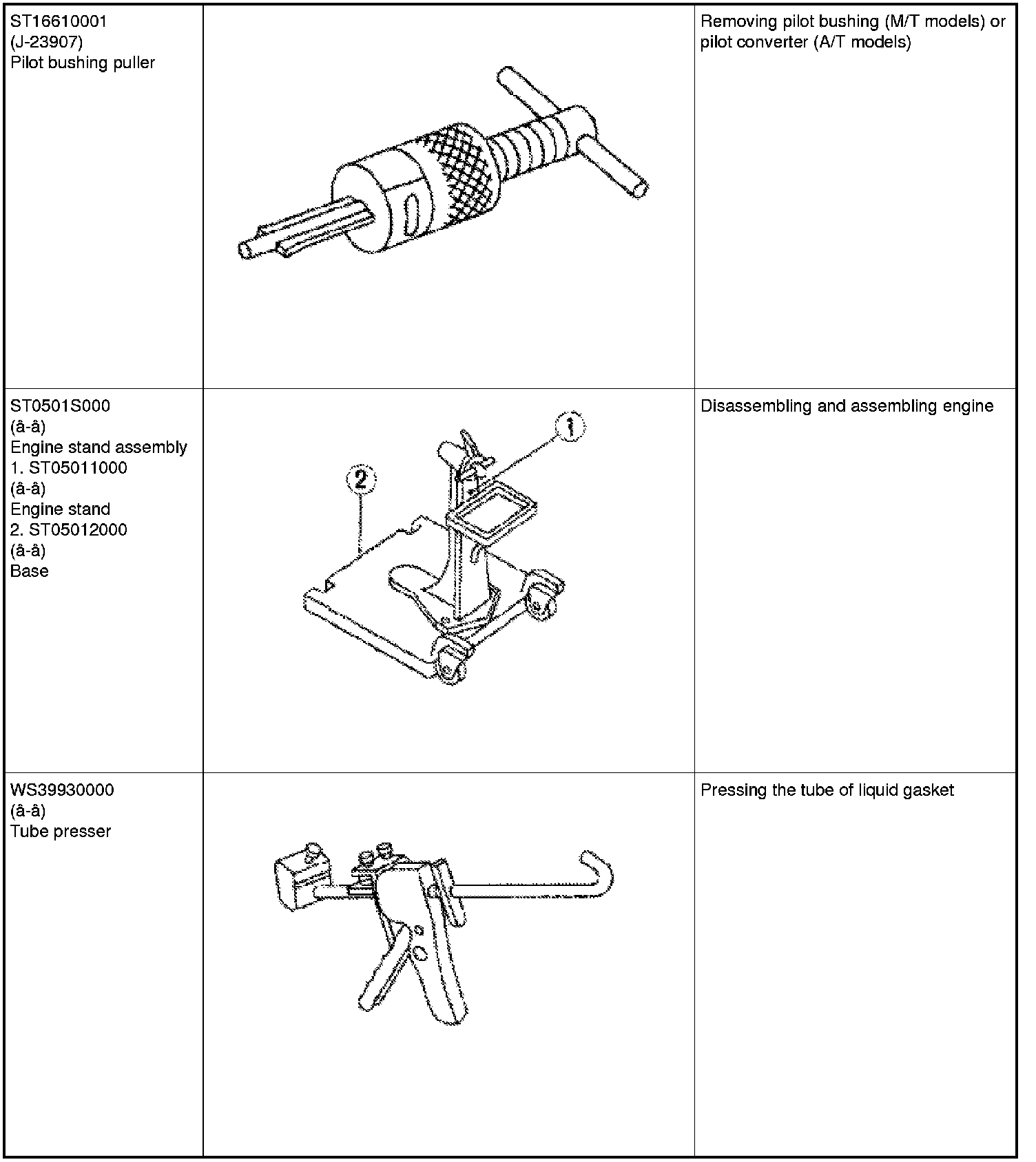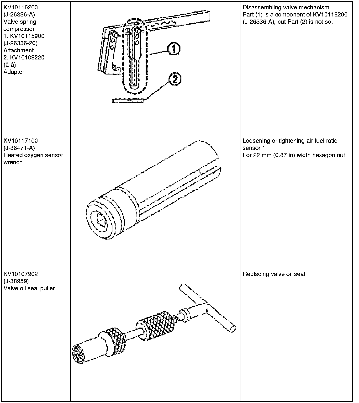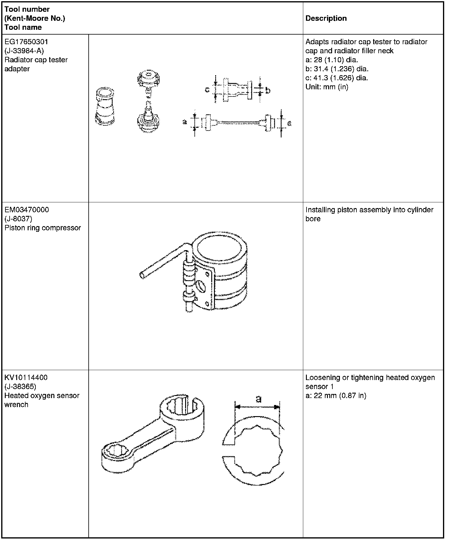 The actual shapes of Kent-Moore tools may differ from those of special service tools illustrated here.