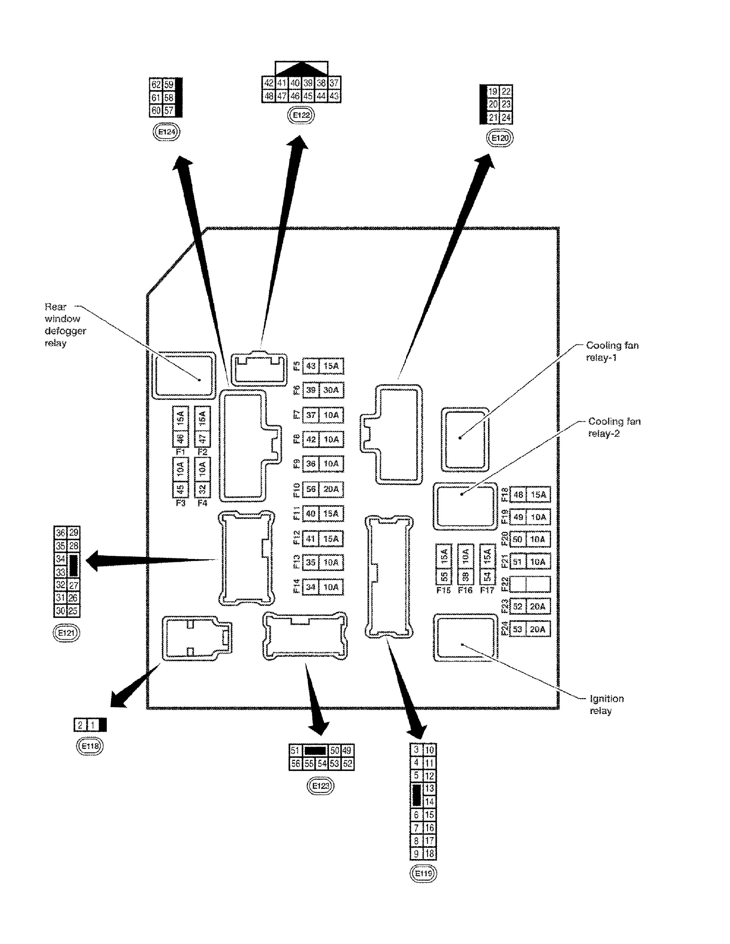 Numbers preceded by an "F" represent the fuse numbers imprinted on the IPDM E/R. The other numbers represent the fuse numbers as they appear in the wiring diagrams.
