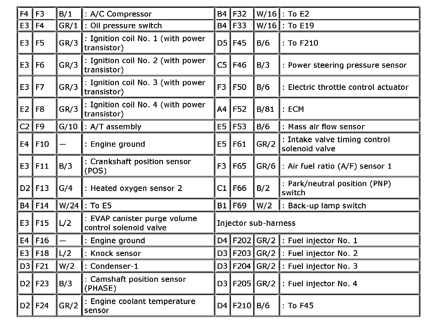 ^ Engine Control Harness (QR25DE Models) and Injector Sub-harness