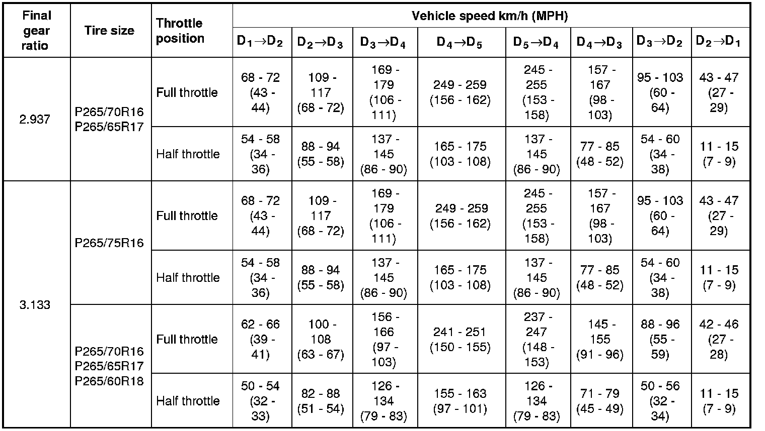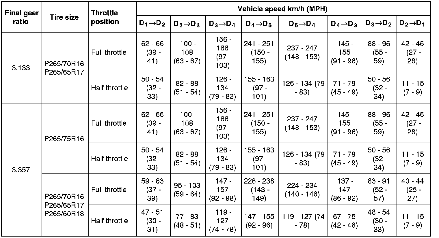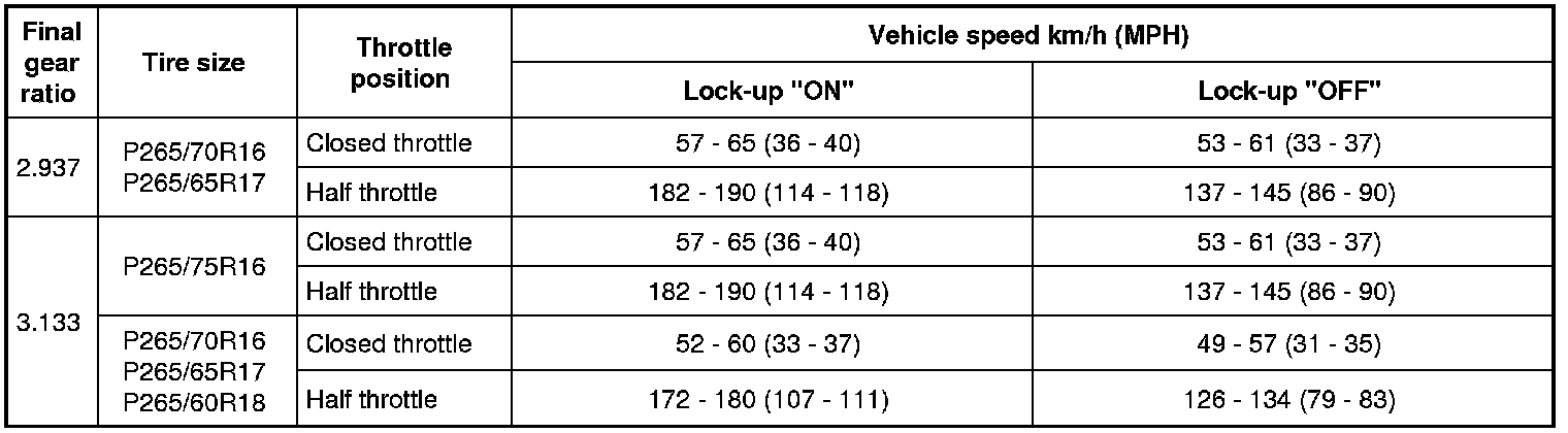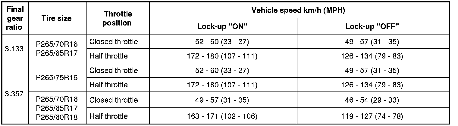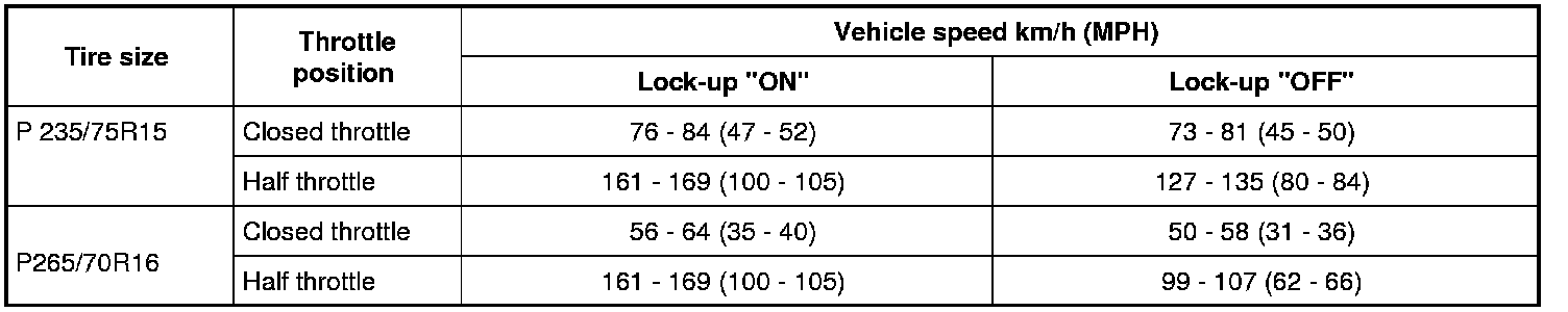 Vehicle Speed at Which Lock-up Occurs/Releases