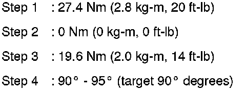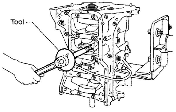 Tighten the connecting rod bolts using Tool in four steps as follows: