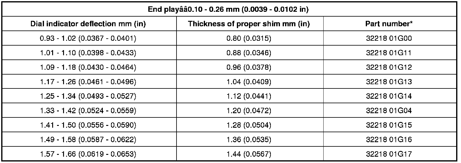 Table for Selecting Proper Counter Gear Front Bearing Shim