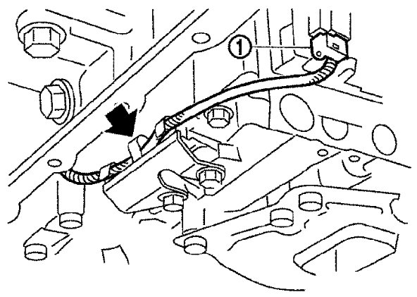 7) Straighten terminal clip () to free the output speed sensor harness.