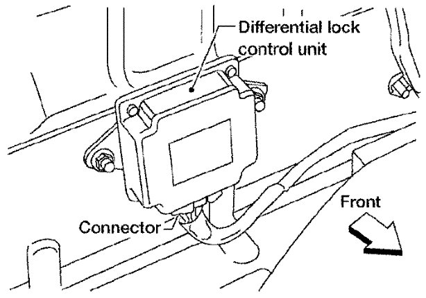 5) Reposition the carpet to access differential lock control unit to disconnect connector.
