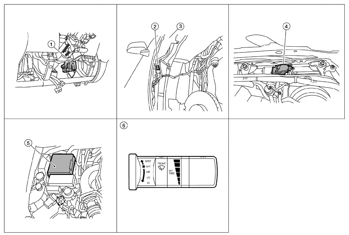 Front Wiper and Washer System: Component Parts Location