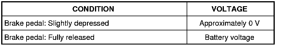 1 Check voltage between stop lamp switch terminal 1 and ground with SDT or tester.