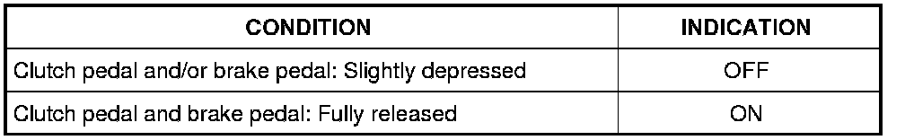 When the brake pedal is depressed, ASCD brake switch is turned OFF and stop lamp switch is turned ON. ECM detects the state of the brake pedal by two types of input (ON/OFF signal).