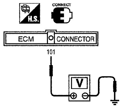 Check voltage between ECM terminal 101 and ground under the following conditions.