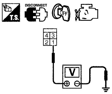 4 Check voltage between ASCD brake switch terminal 1 and ground with SDT or tester.
