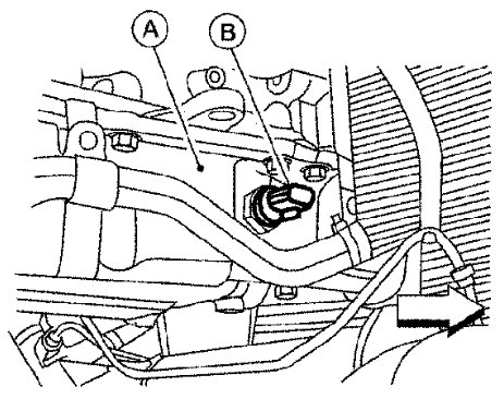 4) Remove the oil pressure switch (B).
